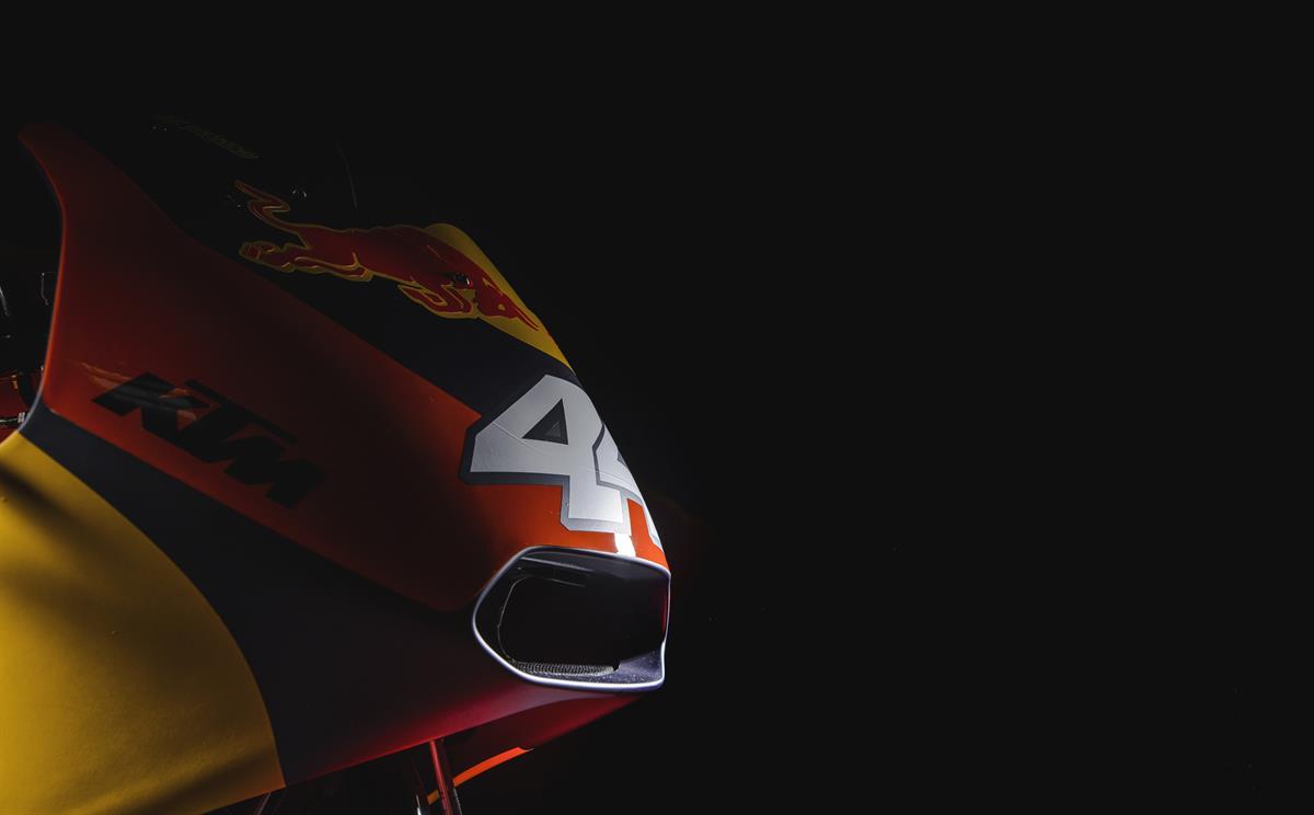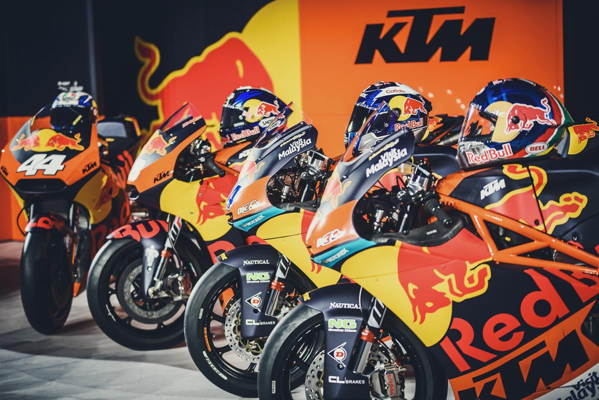 Austrijas motociklu ražotājs jauno motociklu un krāsojumu ar pamanāmu “Red Bull” reklāmu atrādīja savā bāzē Matighofenē, Austrijā. Prezentācijā piedalījās komadnas braucēji Bredlijs Smits un Pols Espargaro, kuriem pievienojās Moto2 un Moto3 “KT”M” braucēji.