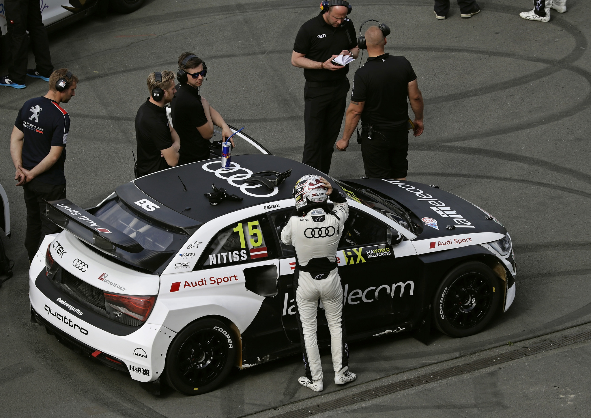 Reinis Nitišs par kvalifikāciju rezultātiem stāsta: “Kvalifikācijās gāja kā pa celmiem, labiem rezultātiem mijoties ar ne tik labiem. Pirmajā sacīkšu dienā nedaudz zaudējām braucienu startos, savukārt šodien daudz laika izkūpēja iesaistoties “pilnvērtīgās dūru cīņās” ar konkurentiem, lai gan tīrākajos apļos varēju uzrādīt labu ātrumu. Rallijkross ir kontaktu sports, un esmu apmierināts, ka arī pie šāda scenārija spējām nodrošināt vietu pusfinālos visām trim Audi komandas mašīnām. Protams, sekoju līdzi arī DTM seriāla notikumiem, kur EKS komandas vadītājs Matiass Ekstrems pirmajā sacīkstē, startējot no 17. vietas spēja finišēt piektais. Rīt sola mainīgus laika apstākļus, kas varētu pamatīgi sajaukt notikumu gaitu un spēku samērus!”