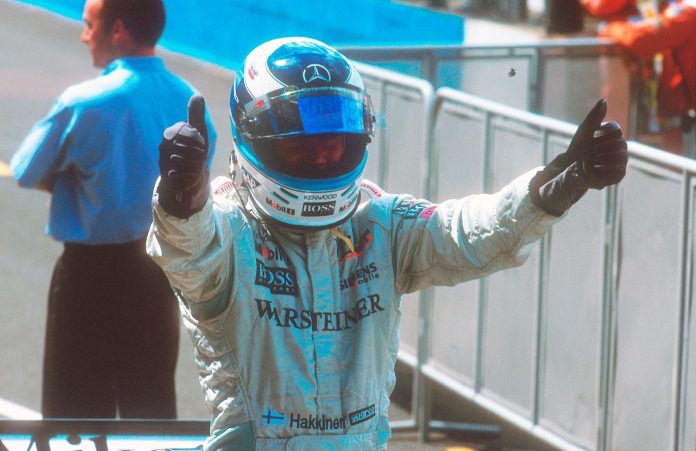 Hakinens svin uzvaru 2001. gada Lielbritānijas GP. Foto: McLaren