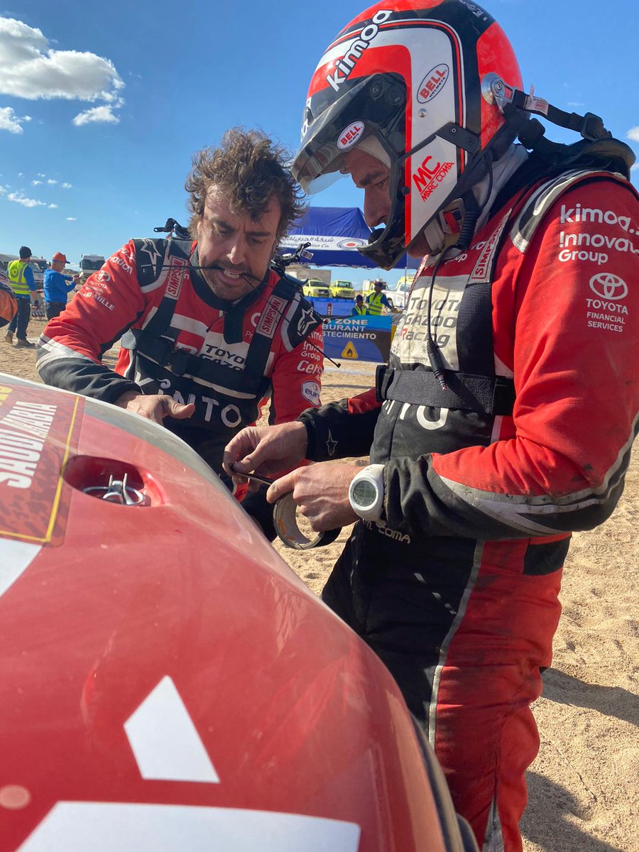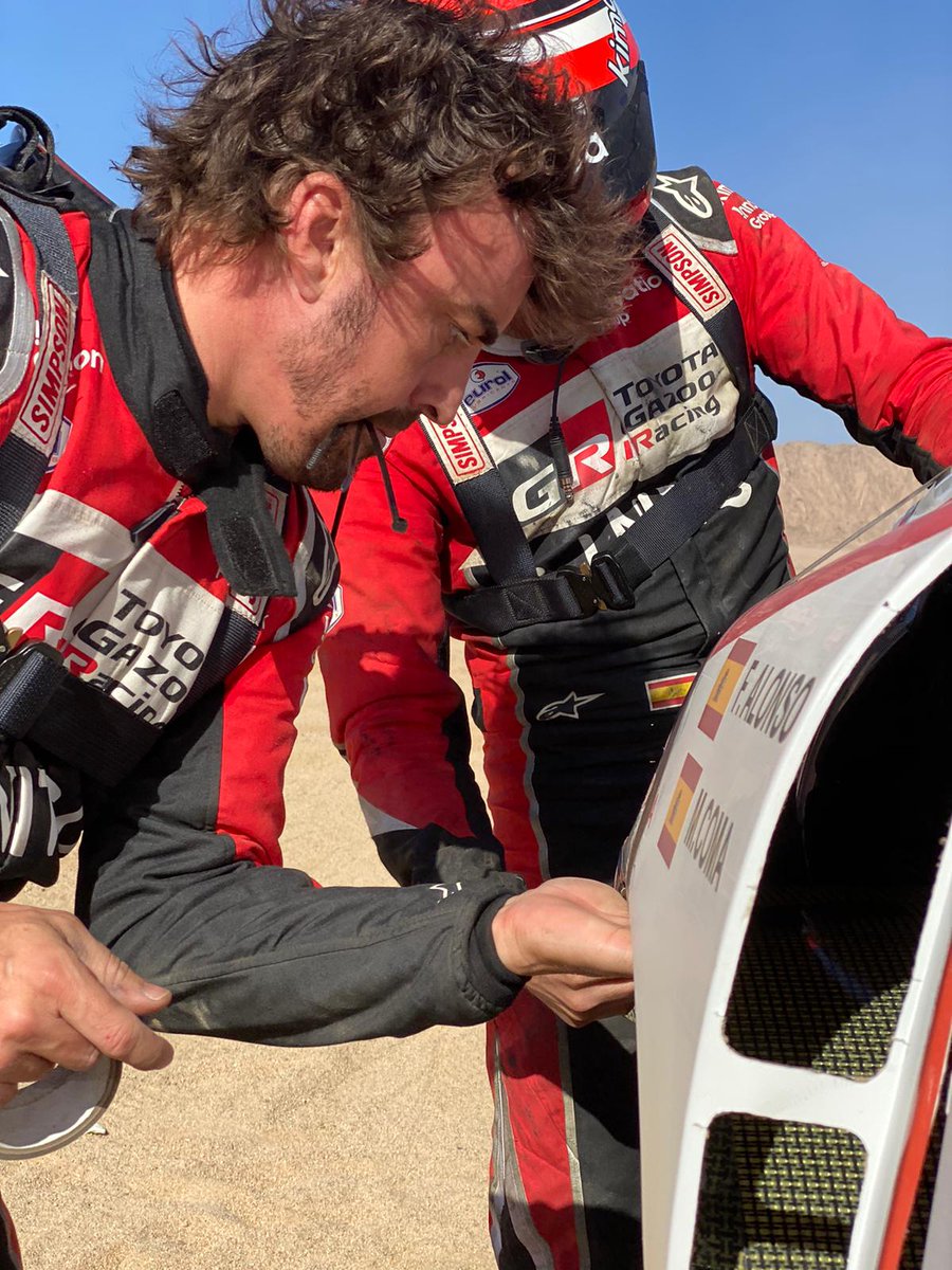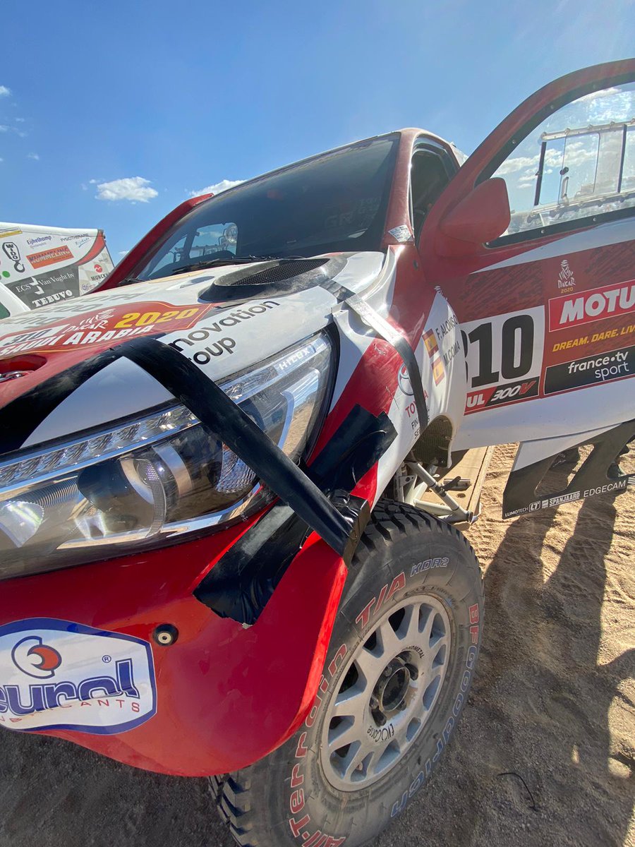 Otrās dienas ātrumposmā pēc 160 veiktajiem km Alonso pilotētais “Toyota Hilux” saņēma triecienu pa priekšējo kreiso riteni, kā rezultātā tika bojāta balstiekārta. Kopā ar stūrmani Marku Komu Fernando Alonso ķērās pie remontdarbiem, negaidot servisa auto, tomēr bojājumus bija iespējams novērst tikai pēc divām ar pusi stundām.