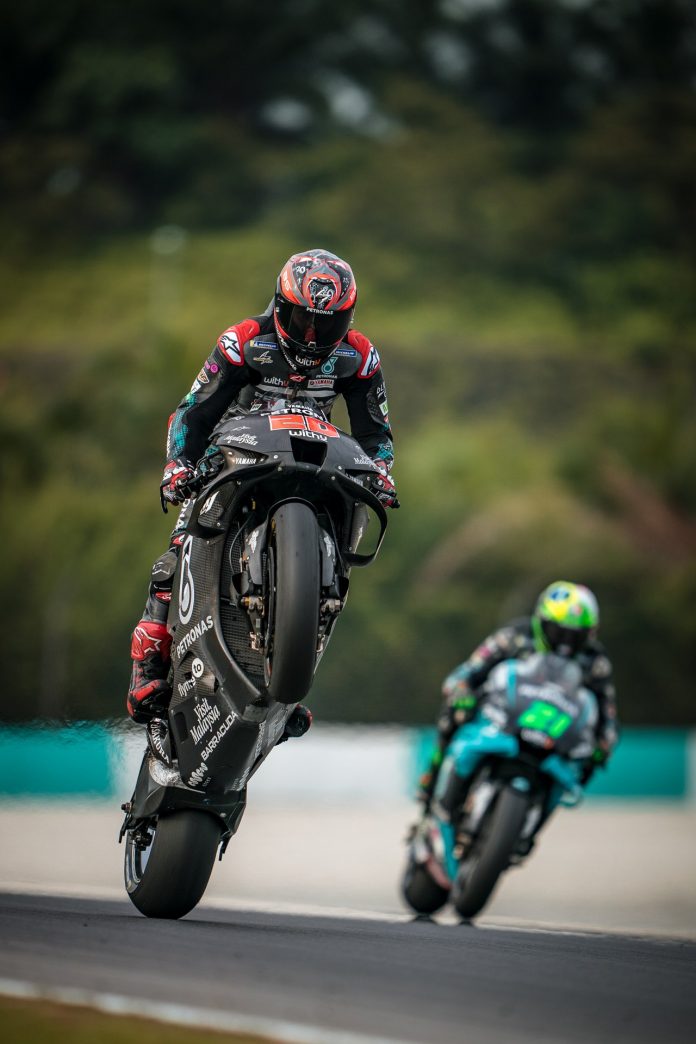 Jaunais francūzis Kvartarāro, kurš 2021.gada sezonā pievienosies “Yamaha” fabrikas komandai, saņēma savā rīcībā fabrikas 2020.gada modeli “Yamaha YZR-M1” un uzreiz bija neapturams Sepangas trīs dienu testos. Pēdējās dienas izskaņā viņš uzrādīja testu labāko apļa laiku 1m58.349s.