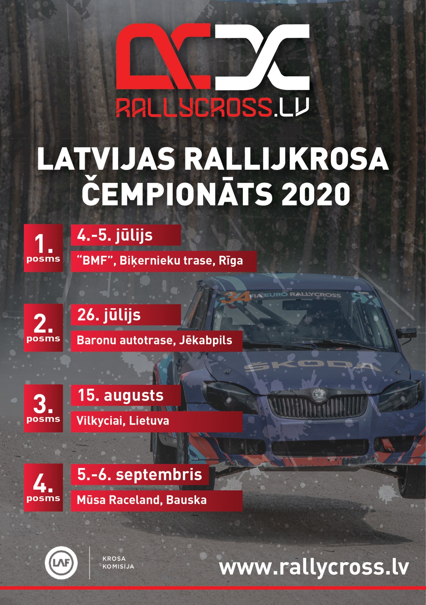 Latvijas Rallijkrosa čempionāta rīkotāji publicējuši atjaunoto 2020. gada čempionāta kalendāru, kurā pirmais posms ieplānots 4.-5. jūlijā – nu jau pēdējos gados ierastais Biķernieku Motorsporta festivāls Biķernieku rallijkrosa trasē.