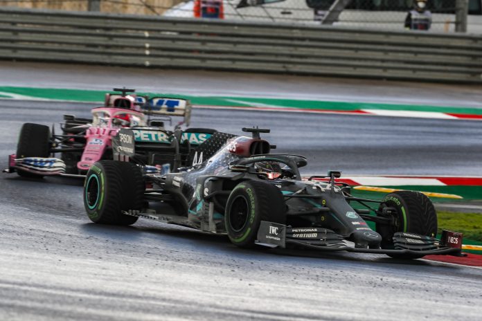 Solītais lietus pēdējos apļos nepienāca. Luiss Hamiltons finišēja pirmais, atkārtojot Mihaela Šūmahera sasniegumu, kļūstot par septiņkārtēju F1 čempionu. Ar viņu kopā uz pjedestāla kāpa Serhio Peress un Sebastians Fetels. Pēdējā aplī Leklērs centās apdzīt Peresu, taču pieļāva kļūdu un piekāpās arī komandas biedram.