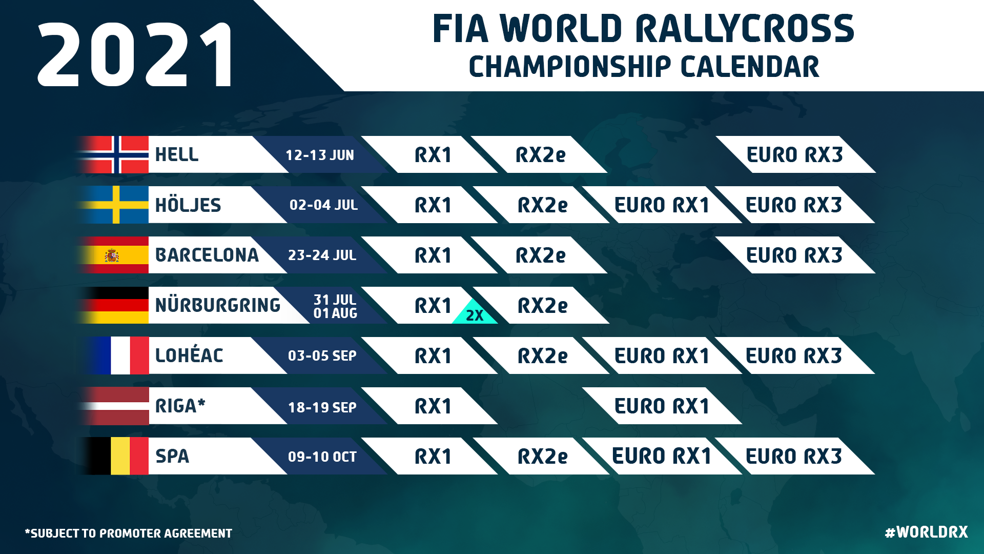 Atgādināsim, ka starpsezonu pārtraukumā FIA pasaules rallijkrosa čempionāts pieredzējis būtiskas izmaiņas – gada sākumā mainījusies čempionāta rīkotājkompānija – līdzšinējā rīkotāja IMG vietā čempionāta vadību šobrīd ir uzņēmies WRC Promoter, kura pārraudzībā atrodas arī FIA pasaules rallija čempionāts.