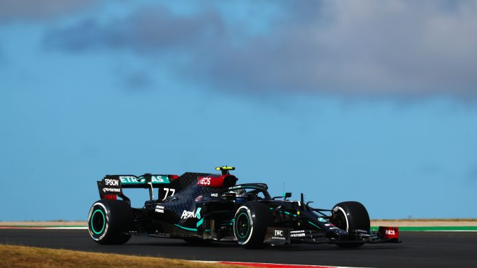 Valtteri Botass izrādījās ātrākais cīņā par rezultātu tabulas augstāko vietu pirmajos Portugāles Grand Prix treniņos, Makss Verstapens paliek otrais, lai gan vien 0,025 sekundes aiz Botasa. Serhio Peress sesijas izskaņā spēja uzlabot savu apli un iekļuva labāko trīniekā.