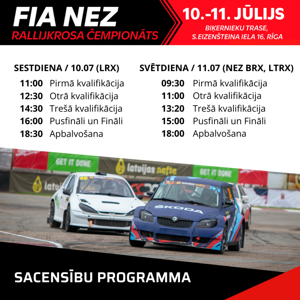 Ar Latvijas rallijkrosa čempionāta un NEZ Baltijas rallijkrosa čempionāta pirmajiem posmiem Biķernieku trasē, Rīgā, šajā nedēļas nogalē tiks uzsākta vietējo rallijkrosa sacensību sezona.