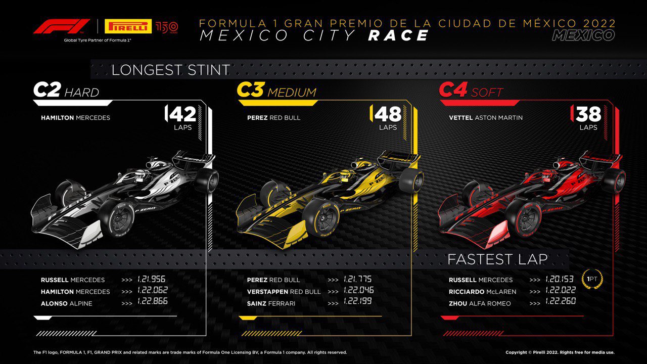 #2 Mehiko GP goda pjedestāls bija precīzs pagājušā gada atkārtojums ar Verstapenu pirmajā, Hamiltonu otrajā un mājinieku Peresu trešajā vietā. Pie tam arī atstatumi starp vadošajiem braucējiem ir ļoti līdzīgi. Pērn Verstapens finišēja 16 sekundes priekšā Hamiltonam un 17 sekundes priekšā Peresam. Šogad handikaps līdz Hamiltonam bija 15 sekundes, bet Peress finišēja 18 sekundes aiz komandas biedra. Kā šogad, tā pērn ceturtās vietas ieguvējs finišēja vairāk kā pusminūti tālāk.