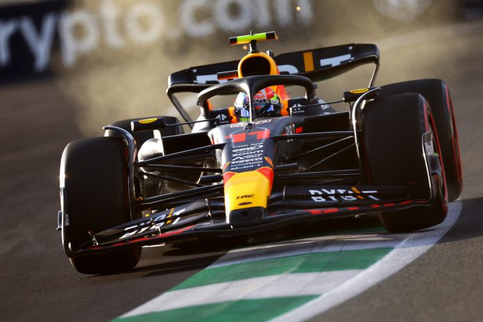 “Red Bull” komandas braucēji Makss Verstapens un Serhio Peress pārliecinoši uzrādīja ātrākos apļa laikus trešajā treniņu sesijā pirms Džidas trasē notiekošā Saūda Arābijas GP.
