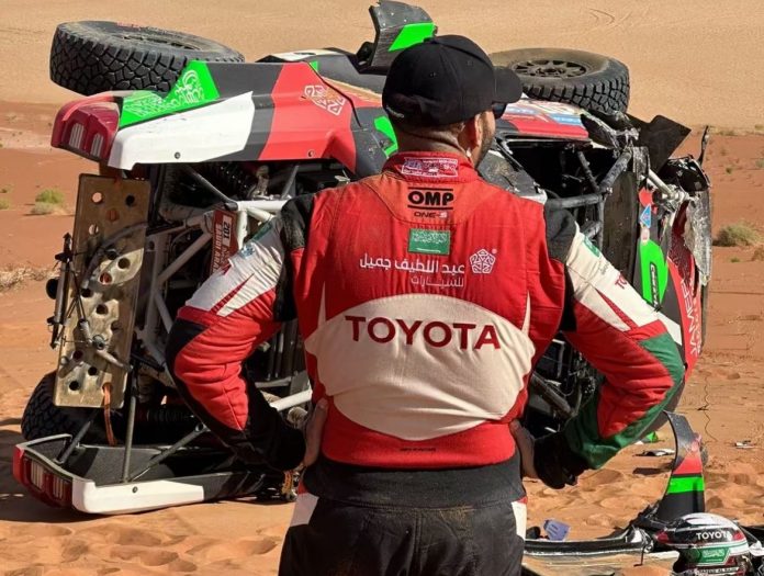Jau rīta pusē kāpās avāriju piedzīvoja Dakaras rallija automobiļu klases līdera Jazīda Al Radži ekipāža. Mašīna avarēja pie visai liela ātruma, sāka kūleņot un tika būtiski bojāta. Sportistiem ar veselību viss labi, bet cīņa par uzvaru beigusies. Ja līdz svētdienai, kad sekos astotais posms, mašīnu izdosies saremontēt, Al Radži drīkstēs atgriezties trasē, tomēr jau ar ievērojami zaudētu laiku.
