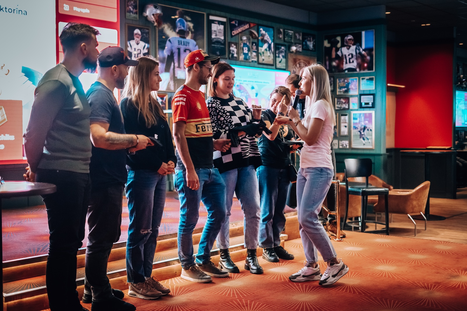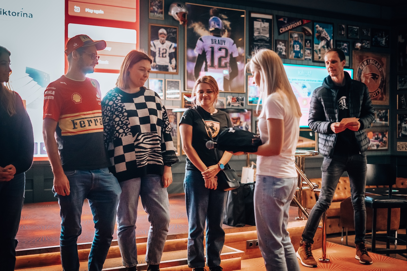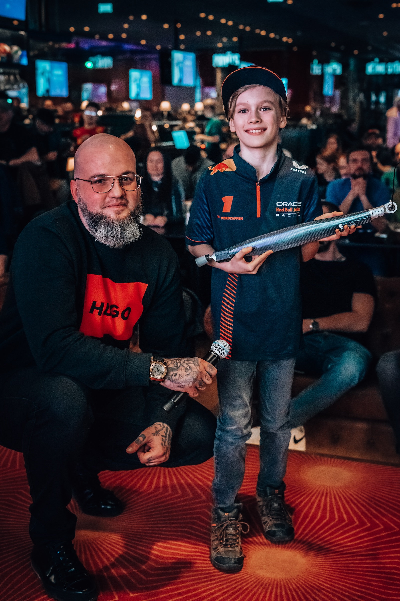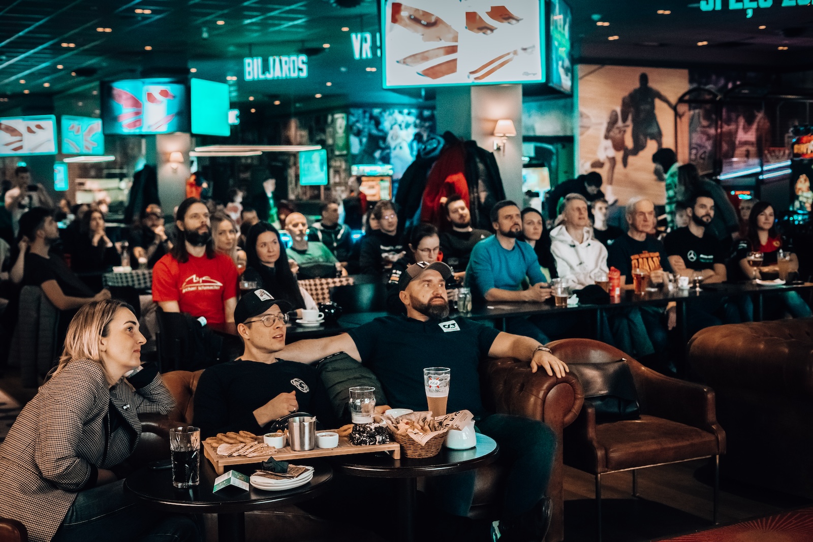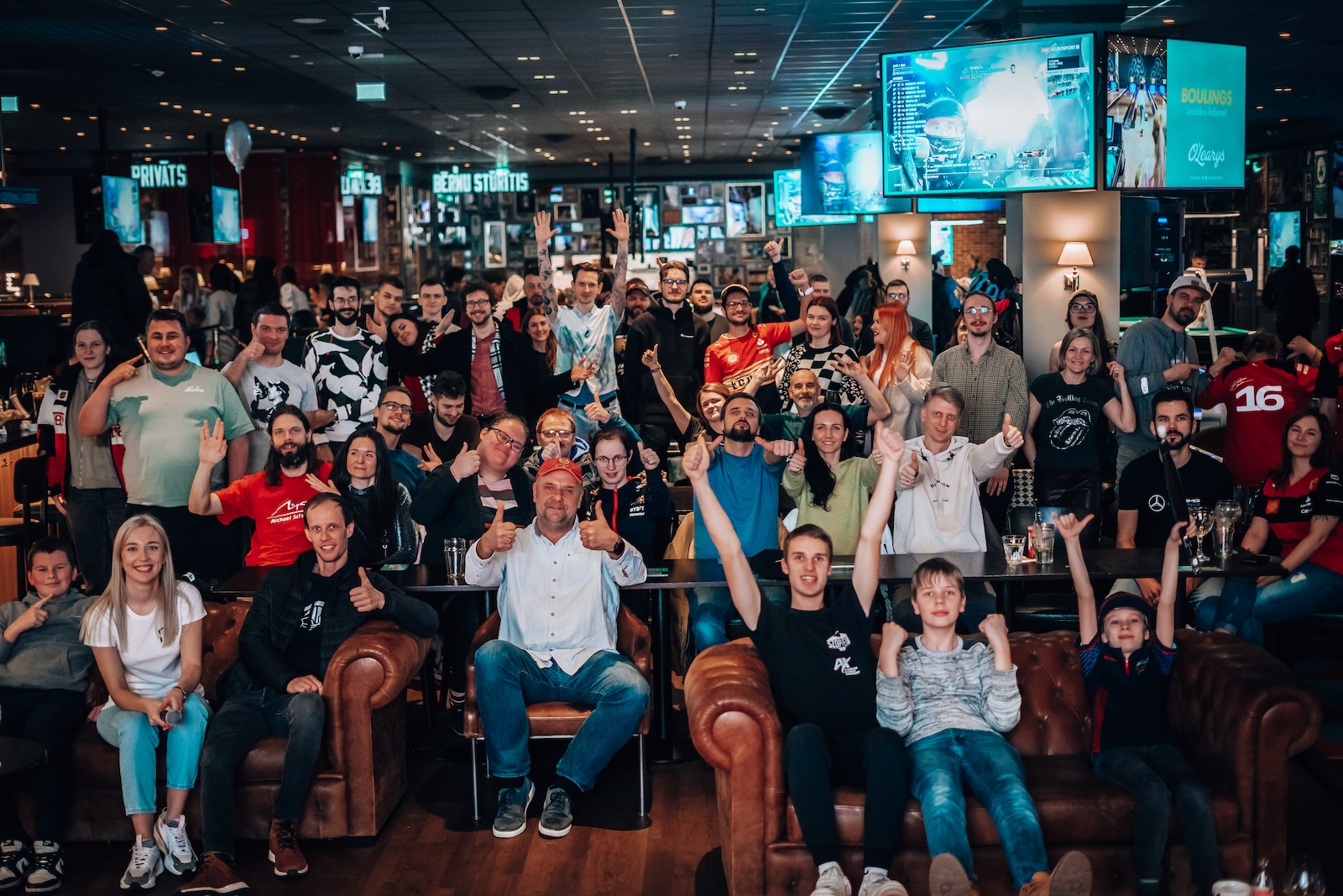 Sarunai “O’Learys Akropole” sporta bārā sekoja kopīga posma skatīšanās uz lielā ekrāna. Vairāk kā 100 cilvēku bija ieradušies, lai jautrā kompānijā starp līdzīgi domājošiem cilvēkiem vērotu, kā Makss Verstapens, Serhio Peress un Karloss Saincs aizcīnās līdz goda pjedestālam.