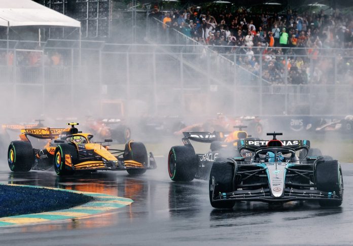 Noriss bija apdzinis Maksu Verstapenu un Džordžu Raselu, nonākot pirmajā pozīcijā, bet pēc tam spēja strauji palielināt pārsvaru. Kad avarēja Logans Sardžents un pie darba tika likta drošības mašīna, “McLaren” pilots uzreiz boksos nedevās, kamēr sāncenši nekavējās doties pie mehāniķiem. Rezultātā viņš atkrita uz trešo pozīciju.