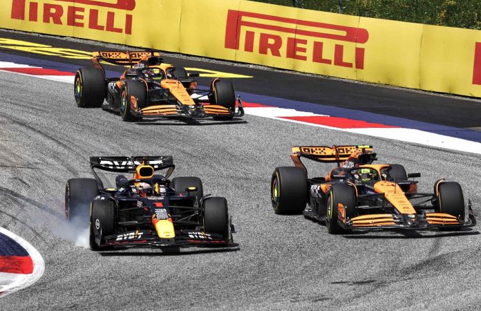 Noriss apdzina Verstapenu trešajā līkumā, taču “Red Bull” braucējs ceturtajā līkumā atguva vadību. Situāciju izmantoja Piastri, kuram Noriss bija atstājis brīvu vietu. Rezultātā finišā nācās samierināties vien ar trešo pozīciju.
