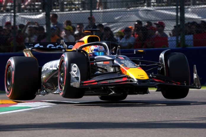 “Red Bull” komandas pilots Makss Verstapens Imolas trasē notikušajā F1 pasaules čempionāta septītajā posmā jau pēc starta pārņēma līderpozīciju, vēlāk uzaudzēja pārsvaru un nezaudēja pirmo vietu arī pēc drošības auto perioda, kļūstot par Emīlijas-Romanjas GP izcīņas uzvarētāju. Aiz viņa ierindojās “McLaren” komandas piloti Lando Noriss un Oskars Piastri.