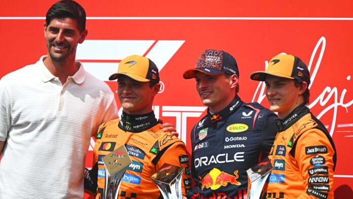 Spā-Frankošampas trasē sestdien uzmanību piesaistīja ne tikai F1 piloti, bet arī futbola kluba Madrides “Real” un Beļģijas izlases vārtsargs Tibo Kurtuā, kurš pasniedza sprinta trofejas Maksam Verstapenam, Oskaram Piastri un Lando Norisam. Taču futbolists neieradās to darīt tikai PR dēļ – viņš ir dedzīgs autosporta fans.