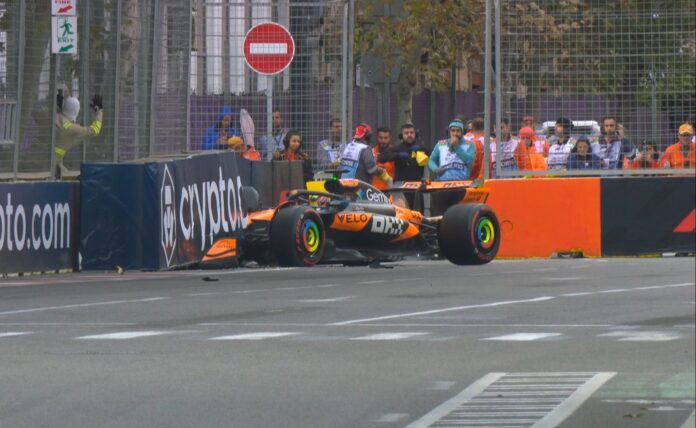 Lando Noriss šoreiz palika tikai septītais, lai gan pēc komandas biedra avārijas viņam pavērās iespēja paveikt vairāk. Britu pilots izskaidroja, ka izvēle doties trasē pirmajam bijusi riskanta: “Brīdi tas šķita pareizi, bet lietus izbojāja iespēju. Tomēr es darīju visu, ko varēju.”