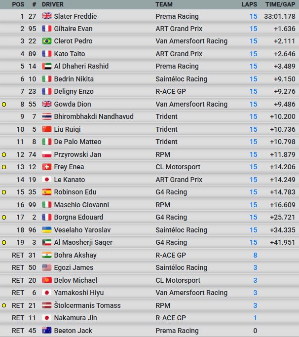 Ļoti spraiga cīņa notika starp diviem pilotiem, kas šajā nedēļas nogalē cīnījās par titulu. Vadību startā saglabāja Evans Žiltērs (“R-ACE GP”), bet Fredijs Sleiters (“Prema Racing”) viņu ilgstoši vajāja. Daudzbrīd abi sacentās sānu pie sāna, bet tikai dažas minūtes pirms finiša, 13. aplī Sleiteram beidzot izdevās veikt apdzīšanu. Uzvarot šajā braucienā viņš kļuva par 2025. gada “Formula Regional European Championship by Alpine” čempionu.
