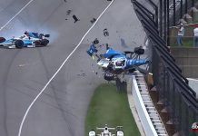 Diksons smagi avarē Indy 500 braucienā, brīnumaini negūst savainojumus